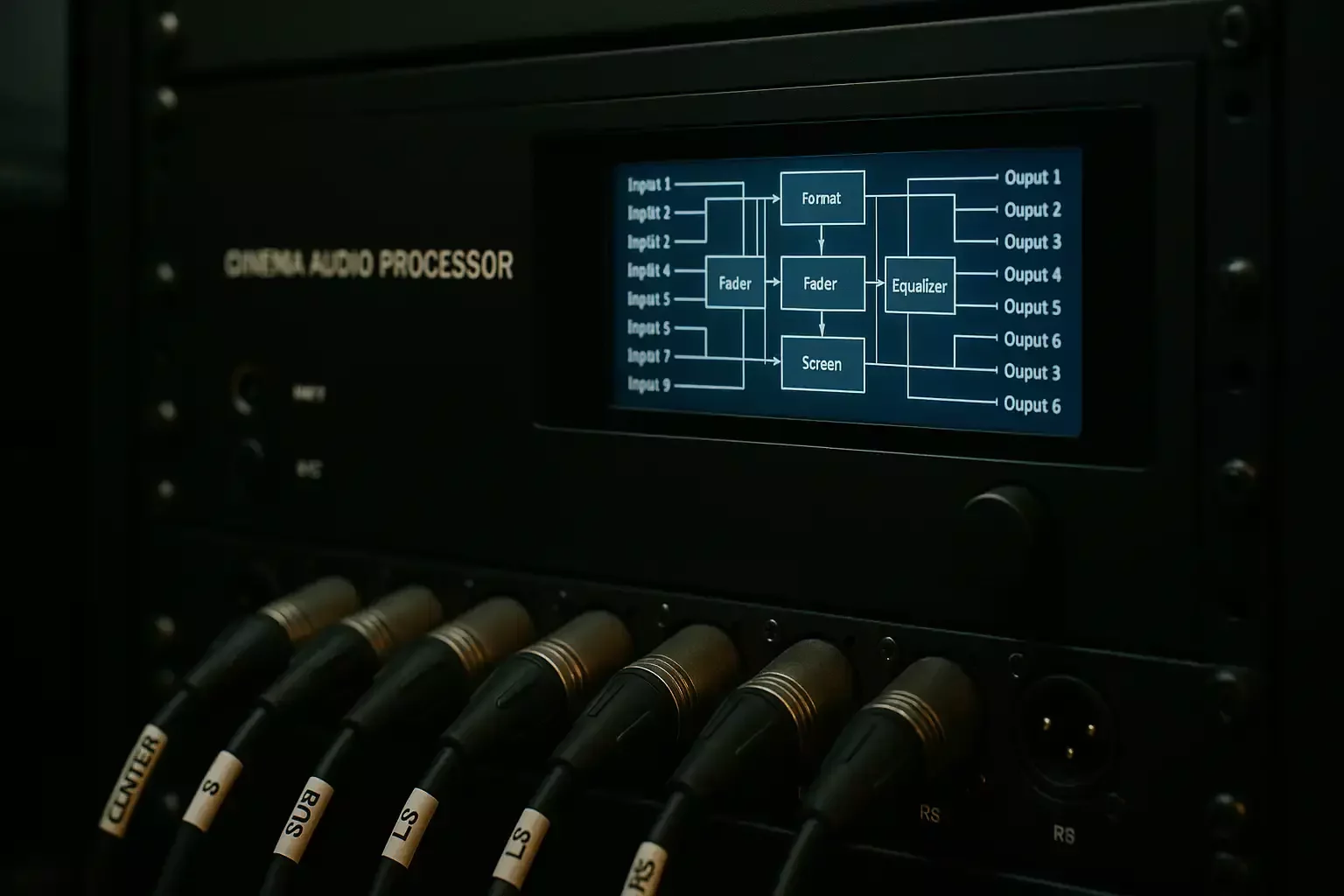 We configure cinema processors for 5.1 / 7.1 / immersive playback with clean, gain-staged signal paths.