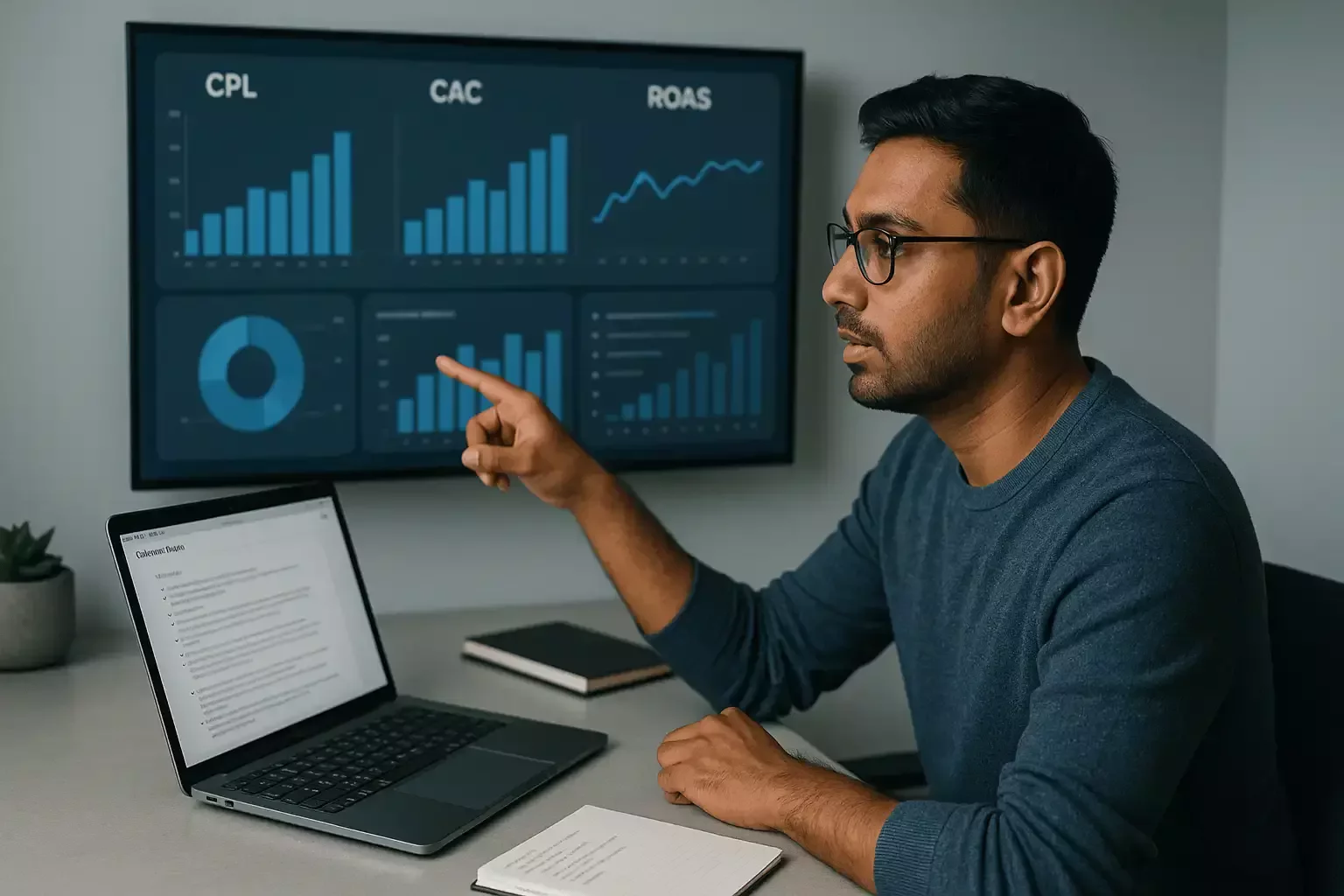 Analytics that matter: CPL, CAC, ROAS, LTV with clear attribution and experiments.